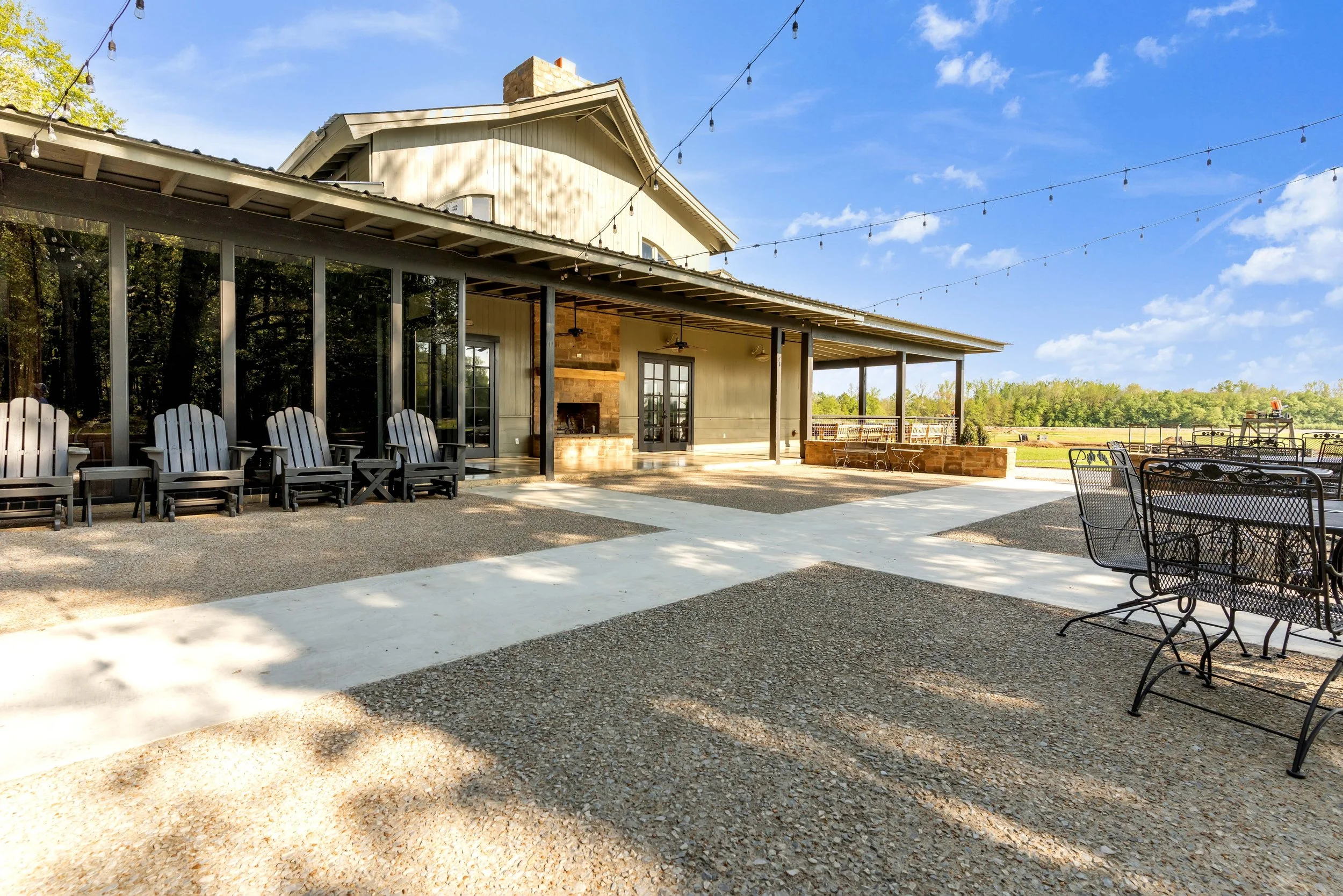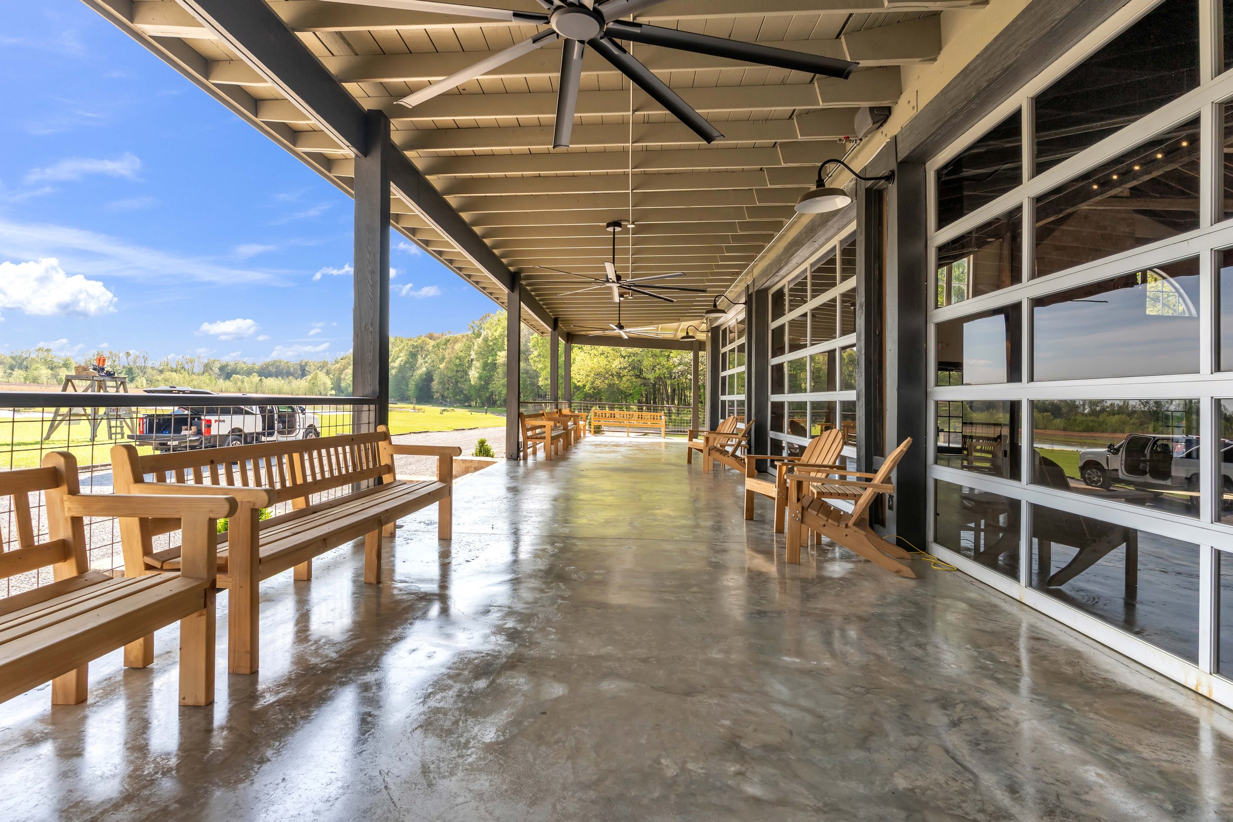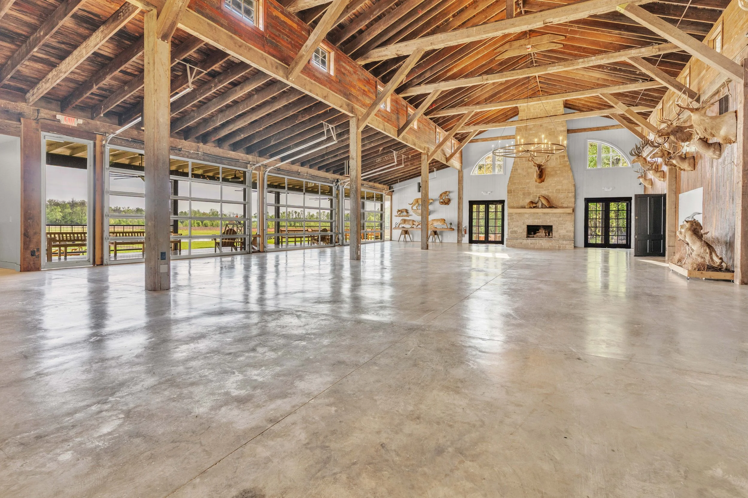 Inside, a 4,000 sq ft grand hall showcases soaring ceilings with exposed timber beams, a stunning indoor stone fireplace, and warm, refined finishes that create an elevated yet inviting atmosphere. Expansive glass doors open to 750 sq ft of covered porches, allowing your event to flow effortlessly between indoor sophistication and open-air charm.