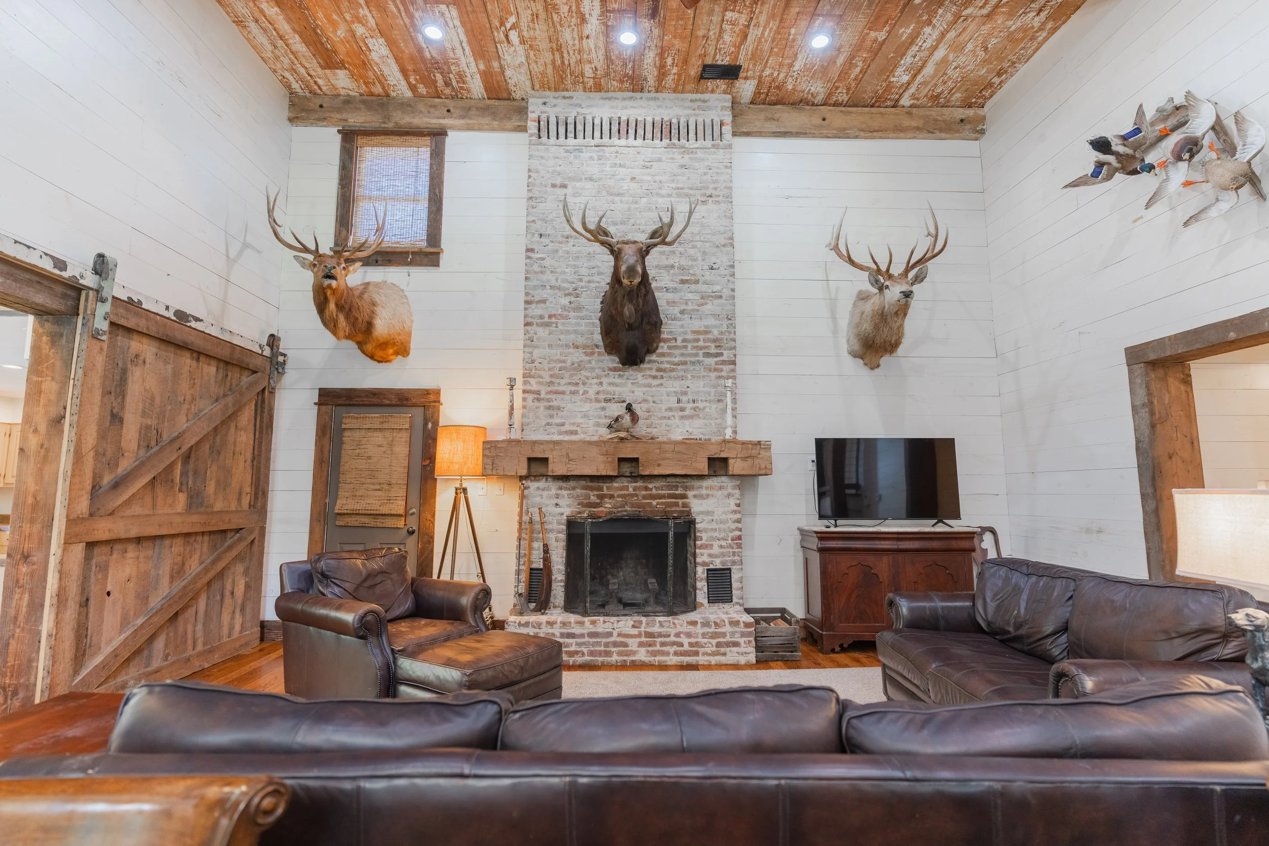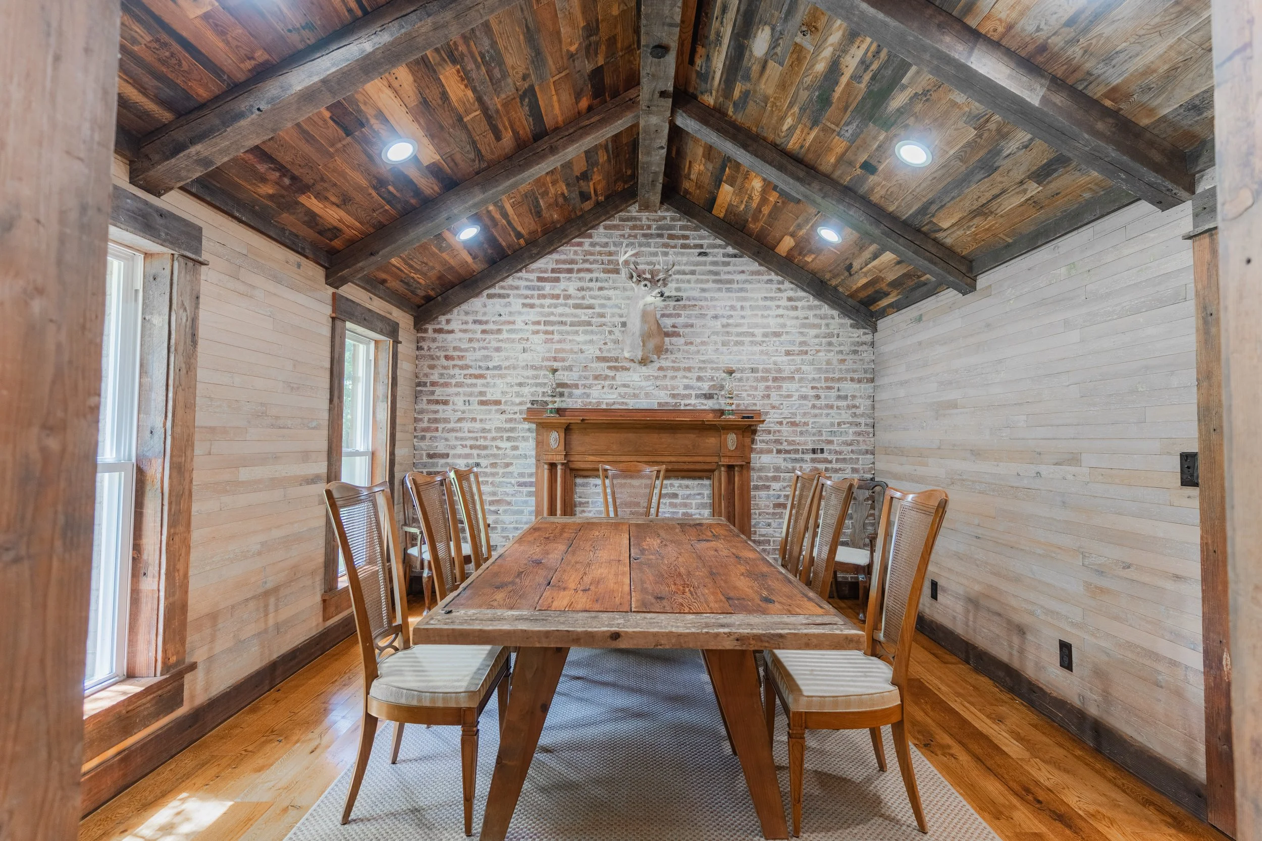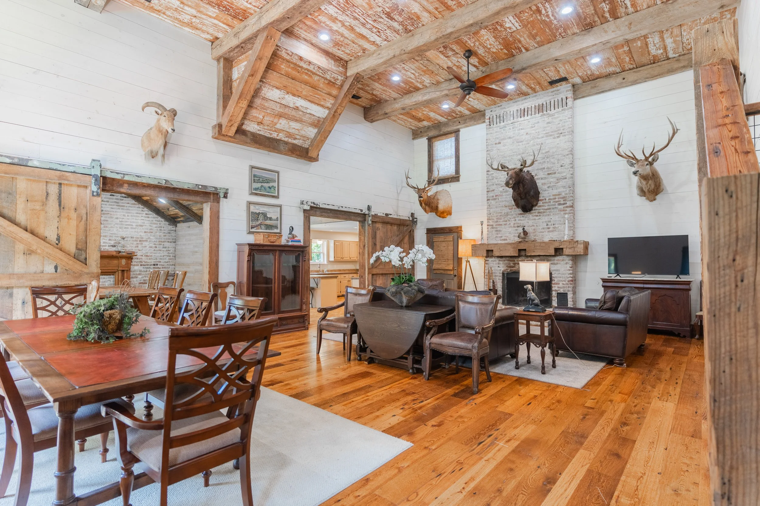 The farmhouse includes a large screened porch, outdoor grill and patio with seating, ADA bathroom on the main floor, newly installed AC/Heat, large kitchen, Wi-Fi, two (2)large TV’s with cable, pool table, and expansive living room with two dining areas. There is a new washer and dryer along with new kitchen appliances including a standalone KitchenAid ice machine. Reclaimed antique flooring, chestnut barn doors, old brick, and beams were installed throughout the house.